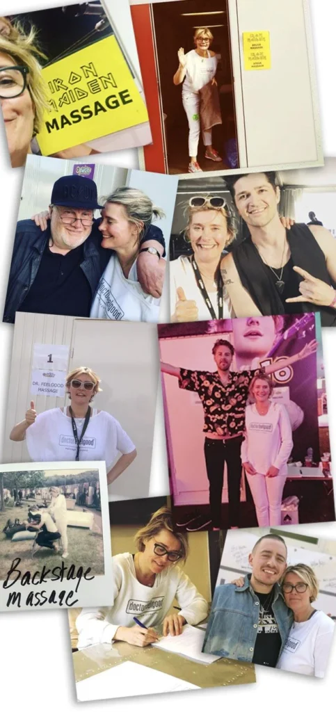 Her story began in New Mexico, where she learned that massage isn’t just a treatment, it’s a way to keep people grounded when life gets loud. From there, she followed the music, spending 15 years as the go-to therapist for hundreds of artists on tour.